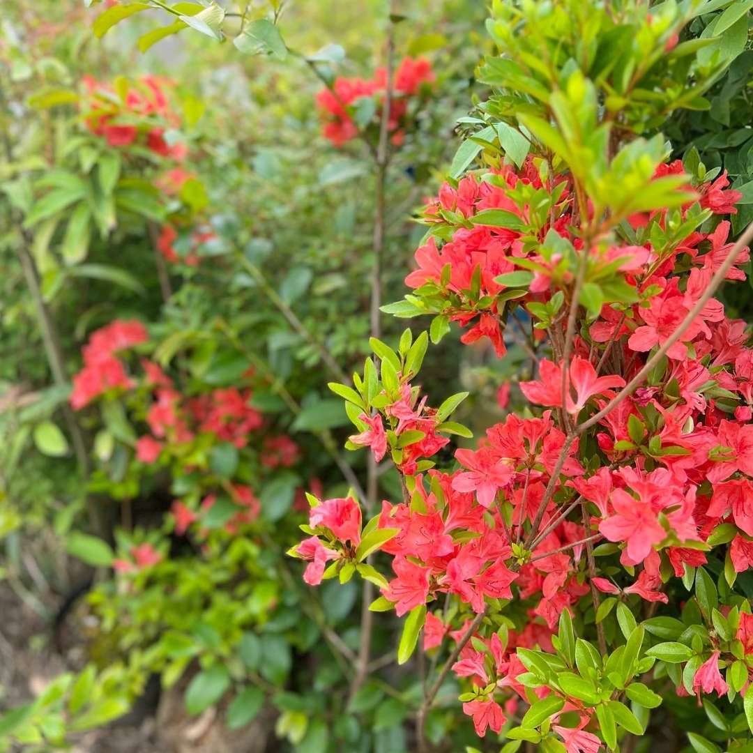 こちらは低木類のヤマツツジ。春先はピンク色のミツバツツジが美しいのですが、夏が近づくと花の色がシックなヤマツツジが開花。