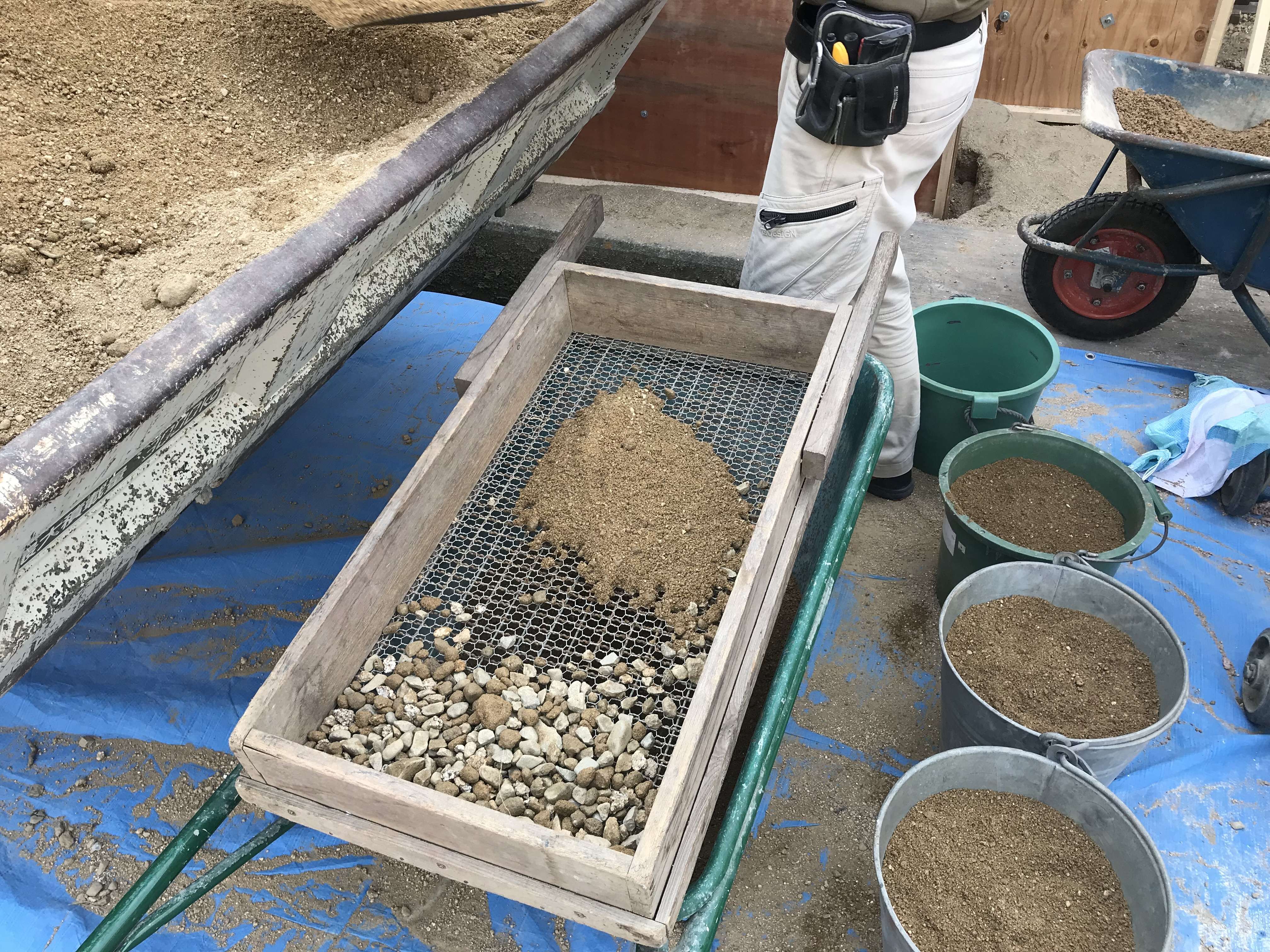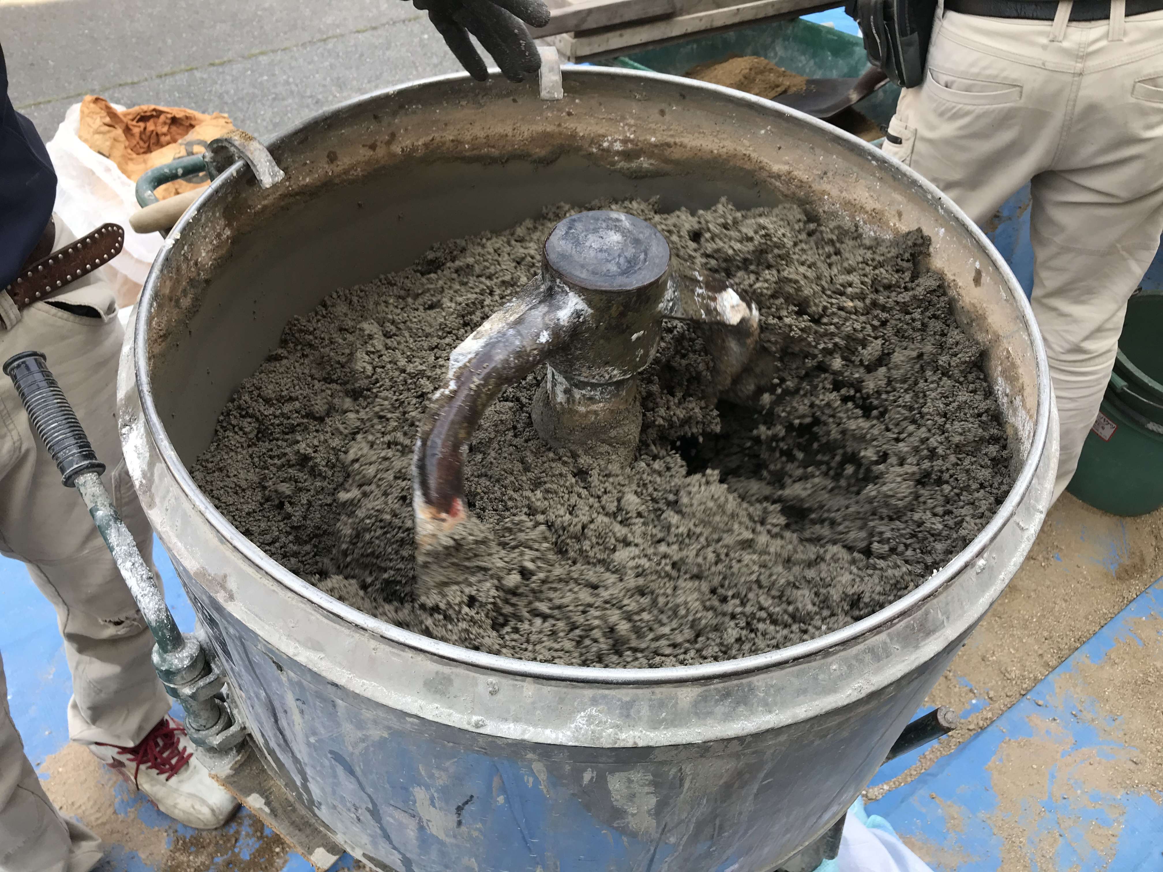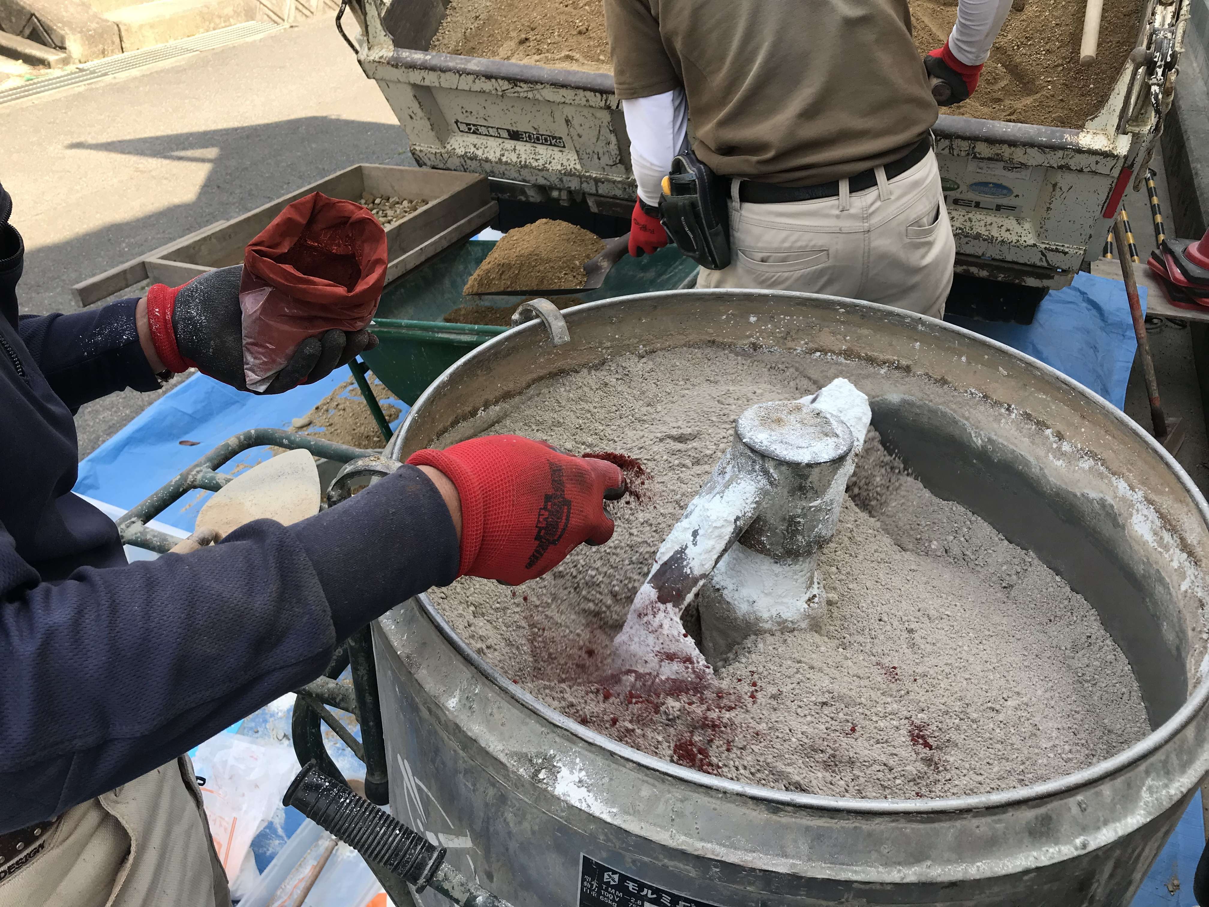 白セメントと真砂土を混ぜ、必要な場合は色粉を入れて