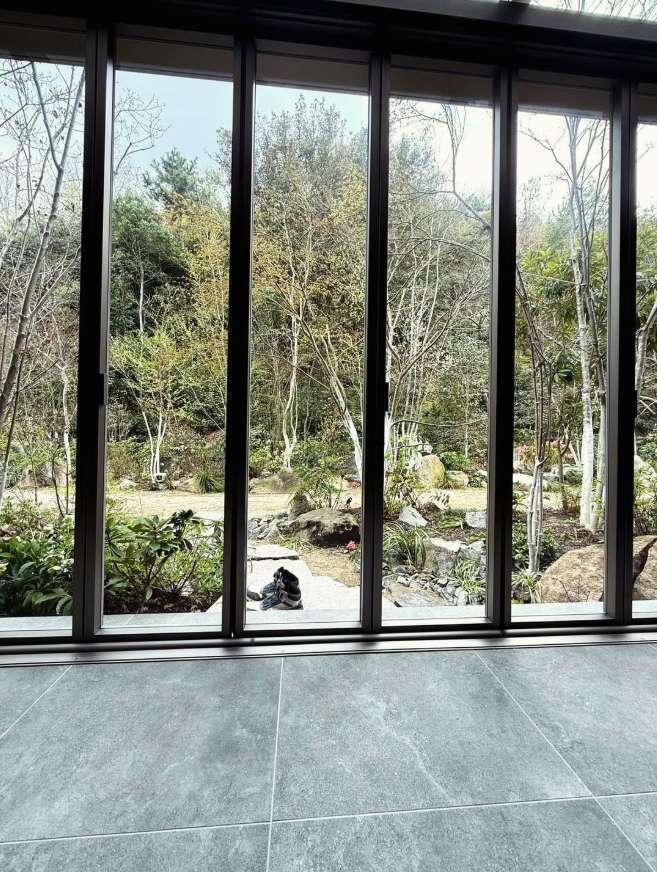 庭の先に、そっと山が重なる景色。